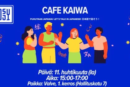 Rakas Cafe Kaiwa on palannut! Tässä tapahtumassa voit nauttia keskustelusta japaniksi tai pelata japanilaisia lautapelejä yhdessä. Voit tuoda mukanasi oman lautapelin tai oppikirjan ja nauttia yhdessäolosta. Vaikka et olisikaan vielä oppinut japania, jaamme osallistujat japanin kielen taitotason perusteella, siksi voit silti osallistua tähän tapahtumaan!